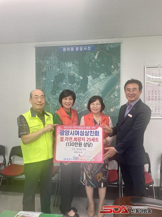 ½ÉÇ༱ ±¤¾ç½Ã¿©¼º»óģȸÀåÀº ¡°¾î·Á¿î ÀÌ¿ôµé¿¡°Ô ÀÛÀº ¹°Ç°ÀÌÁö¸¸ ÀÌ¿ô °£ÀÇ µû¶æÇÑ ¸¶À½ÀÌ Àü´ÞµÆÀ¸¸é ÇÑ´Ù¡±¸ç ¡°¾ÕÀ¸·Îµµ ²ÙÁØÇÑ ºÀ»ç¿Í ³ª´®À» ÅëÇØ ÀÌ¿ô»ç¶û ½Çõ¿¡ ¾ÕÀå¼°Ú´Ù¡±°í ¸»Çß´Ù.