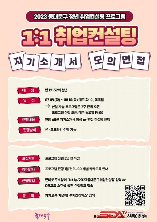 ÄÁ¼³ÆÃÀº ¸¸ 19¼¼ºÎÅÍ 39¼¼ û³âÀ» ´ë»óÀ¸·Î 7¿ù 4ÀϺÎÅÍ 8¿ù 10ÀϱîÁö ÁøÇàµÇ¸ç, ½ÅûÀº ÇÁ·Î±×·¥ ÁøÇà 2ÀÏÀü±îÁö °¡´ÉÇÏ´Ù. Âü¿©¸¦ ¿øÇÏ´Â °æ¿ì ÀÎÅͳÝÁÖ¼Òâ¿¡ ¡®bit.ly/2023µ¿´ë¹®±¸Ãë¾÷ÄÁ¼³ÆÃ¡¯À» ÀÔ·ÂÇϰųª QRÄÚµå·Î ½ºÄµÇÏ¿© ½Åû¸µÅ©¿¡ Á¢¼ÓÇØ ½ÅûÇÏ¸é µÈ´Ù.