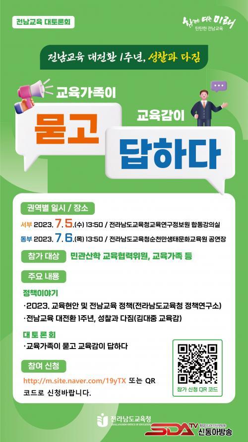 ÇÑÆí ¡®Àü³²±³À° ´ëÅä·Ðȸ¡¯Âü¿© ¹æ¹ý°ú ÀÚ¼¼ÇÑ Çà»ç ³»¿ë°ú °ü·ÃÇØ¼´Â Àü¶ó³²µµ±³À°Ã» ´©¸®Áý°ú SNS¿¡¼ È®ÀÎÇÒ ¼ö ÀÖ´Ù.