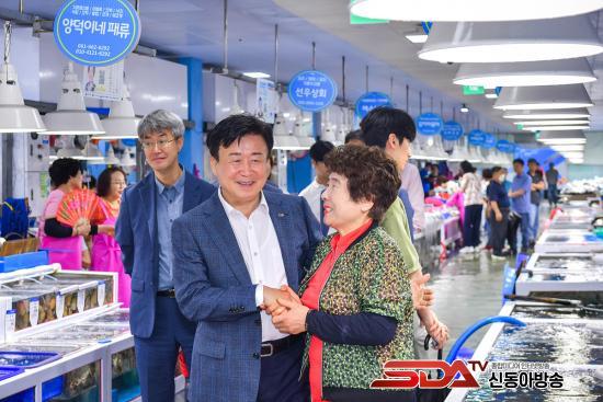 ¿©¼ö ¼ö»ê½ÃÀåÀ» ¹æ¹®ÇØ ½Ã¼³ ³ëÈÄÈ·Î ÀÎÇØ »õ·Ó°Ô ¸®¸ðµ¨¸µ ÁßÀÎ °í°´ÈÞ°Ô½Ç µî ½Ã¼³¹°À» µÑ·¯º¸°í »óÀε鿡°Ô ¿©¸§ À帶ö °Ç°¿¡ À¯ÀÇÇØ ÁÙ °ÍÀ» ´çºÎÇß´Ù.