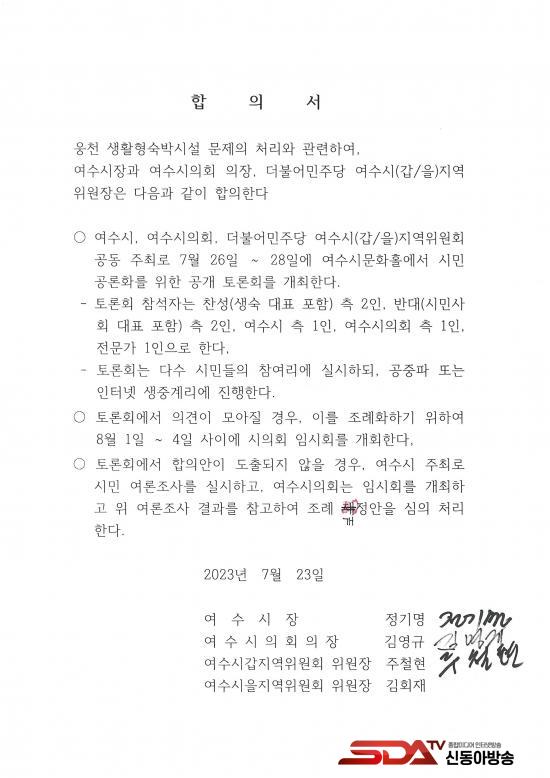 [½Åµ¿¾Æ¹æ¼Û=±è±â³² ±âÀÚ] ´õºÒ¾î¹ÎÁÖ´ç ¿©¼ö½Ã(°©)Áö¿ªÀ§¿øÈ¸¿Í ¿©¼ö½ÃÁ¤ºÎ, ¿©¼ö½ÃÀÇȸ°¡ °øµ¿ ÁÖÃÖÇÏ¿© ¡®¿õõ »ýȰ¼÷¹Ú½Ã¼³ ¿ëµµº¯°æ¡¯ °ü·Ã °ø·ÐÈ­¸¦ À§ÇÑ ½Ã¹ÎÅä·Ðȸ¸¦ ÃßÁøÇϱâ·Î Àü°Ý ÇÕÀÇÇß´Ù.