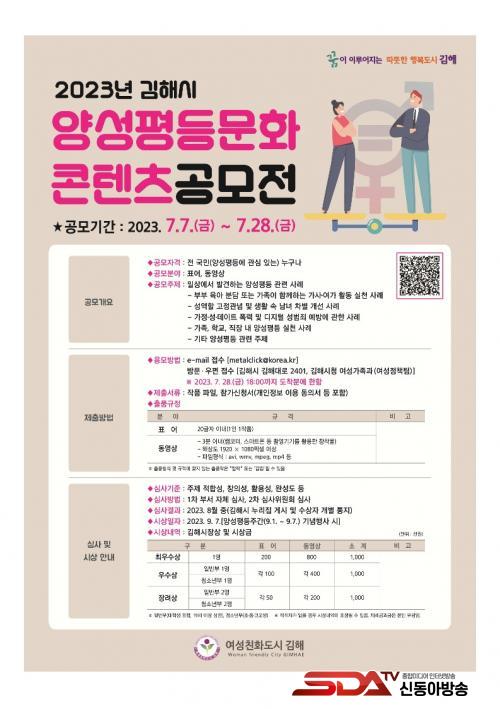 [½Åµ¿¾Æ¹æ¼Û´º½º=¾çÇýÁö±âÀÚ] ±èÇØ½Ã(½ÃÀå ȫſë)´Â ¾ç¼ºÆòµî ÁÖ°£(9. 1. ~ 9. 7.)À» ¸ÂÀÌÇÏ¿© ¾ç¼ºÆòµî ¹®È­¸¦ È®»êÇÏ°í ¿©¼ºÄ£È­µµ½Ã ±èÇØ¿¡ ´ëÇÑ ½Ã¹ÎÀÇ Àνİú °ü½ÉÀ» ³ôÀ̱â À§ÇÑ ¾ç¼ºÆòµî ¹®È­ ÄÜÅÙÃ÷ °ø¸ðÀüÀ» 7¿ù 7ÀϺÎÅÍ 28ÀϱîÁö °³ÃÖÇÑ´Ù°í ¹àÇû´Ù.