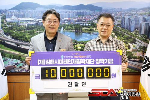[½Åµ¿¾Æ¹æ¼Û´º½º=ÃÖ¼ÛÈ­±âÀÚ] ±èÇØ½Ã¹Ì·¡ÀÎÀçÀåÇÐÀç´Ü(ÀÌ»çÀå ÇöÁ¾¿ø)Àº 21ÀÏ ±Ç´ÞÇö(59) °øÀÎȸ°è»ç°¡ ÀåÇбâ±Ý 1,000¸¸¿øÀ» ±âŹÇß´Ù°í ¹àÇû´Ù.
