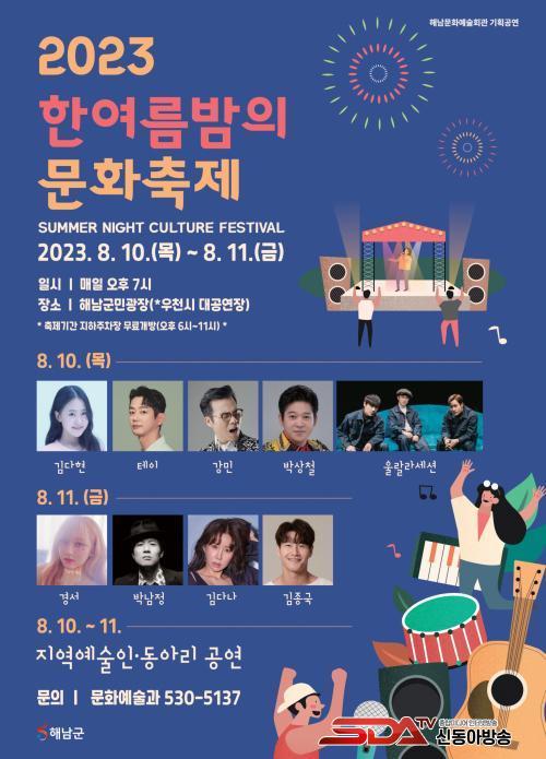 ¿ÃÇØ ÃàÁ¦ÀÇ Ã¹³¯ÀÎ 10ÀÏ¿¡´Â Å×ÀÌ, °¹Î, ¹Ú»óö, ¿ï¶ó¶ó¼¼¼Ç µî ÀαⰡ¼ö°¡ Ã⿬ÇÏ¿© ÇÑ¿©¸§ ¹ãÀÇ ¹«´õÀ§¸¦ ³¯¸± ¶ß°Å¿î ¹«´ë¸¦ ¼±º¸ÀδÙ. Æ®·ÎÆ®°¡¼ö ±è´ÙÇö¾çÀÇ ÇØ³²±º È«º¸´ë»ç À§Ã˽İú Àå°í³Å¸, ¼Ò°í, Åë±âŸ, »ö¼ÒÆù µî Áö¿ª¿¹¼úÀεéÀÇ ¹«´ëµµ À̾îÁø´Ù.
