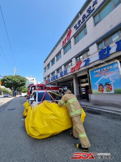 À̹ø¿¡ ½Ç½ÃÇÑ ÈÆ·ÃÀº Àü±âÂ÷·® ÈÀ縦 °¡Á¤ÇØ Áø¾Ð´ë¿øµéÀÌ °üâÀ¸·Î Â÷·® ³»¡¤¿ÜºÎ¿¡ ¹æ¼öÇÏ¿© ³Ã°¢È¿°ú¸¦ ±Ø´ëÈÇÑ ÈÄ À̵¿Çü ³Ã°¢¼öÁ¶´Â ¹æ¼ö¡¤ºÒ¿¬¼ÒÀç Â÷·® ÇÏºÎ¿Í Ãø¸éÀ» °¨½Î´Â ¹æ½ÄÀ¸·Î ÈÆ·ÃÀ» ½Ç½Ã ÇÏ¿´½À´Ï´Ù.