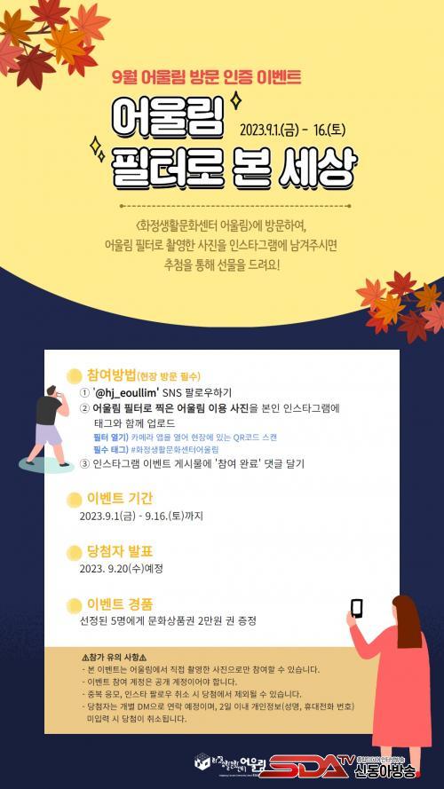 À̺¥Æ® Âü¿© ¹æ¹ýÀº ¡ã¾î¿ï¸² ÀνºÅ¸±×·¥ ÆÈ·Î¿ì ¡ãÄ«¸Þ¶ó ¾ÛÀ¸·Î ÇöÀå¿¡ ºñÄ¡µÈ ÇÊÅÍ QRÄÚµå ½ºÄµ ¡ã½ÇÇàµÈ À̹ÌÁö ÇÊÅÍ·Î ¾î¿ï¸² °ø°£¿¡¼ ÃÔ¿µÇÑ »çÁøÀ» ÇØ½Ãű×(#ÈÁ¤»ýȰ¹®È¼¾Å;î¿ï¸²)¿Í ÇÔ²² ÀνºÅ¸±×·¥¿¡ ¾÷·Îµå ¡ãÀ̺¥Æ® °Ô½Ã¹°¿¡ ¡®Âü¿© ¿Ï·á¡¯ ´ñ±Û ³²±â±â ¼øÀ¸·Î ÇÏ¸é µÈ´Ù.