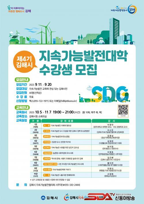 Áö¼Ó°¡´É¹ßÀü´ëÇÐÀº ±èÇØ½ÃÁö¼Ó°¡´É¹ßÀüÇùÀÇȸ ÁÖ°ü »ç¾÷À¸·Î Áö¼Ó°¡´É¹ßÀü*¿¡ ´ëÇÑ ½Ã¹ÎÀǽÄÀ» ÇÔ¾çÇϱâ À§ÇØ Áö¼Ó°¡´É¹ßÀüÀÇ Çʿ伺°ú °æÁ¦‧»çȸ‧ȯ°æ µî ÁÖ¿ä ºÐ¾ßº° »ç·Ê Áß½ÉÀ¸·Î ±³À°ÇÑ´Ù.