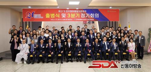 ´ëÇà±â°üÀåÀÎ È«ÅÂ¿ë ±èÇØ½ÃÀåÀº ÀÇÀåÀÎ À±¼®¿ ´ëÅë·ÉÀ» ´ë½ÅÇÏ¿© Á¦21±â ÀÚ¹®À§¿ø¿¡°Ô À§ÃËÀåÀ» Àü¼öÇϸç, Çѹݵµ ÆòÈÅëÀϰú ±èÇØ½Ã ¹ßÀüÀ» À§ÇØ ÇѸ¶À½ ÇѶæÀ¸·Î Èû½á ´Þ¶ó°í ´çºÎÇß´Ù.