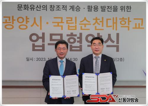 [½Åµ¿¾Æ¹æ¼Û=¹Ú±¤¿Á±âÀÚ] ±¤¾ç½Ã´Â ±¹¸³¼øÃµ´ëÇб³¿Í Áö³­ 11ÀÏ ½Ãû Á¢°ß½Ç¿¡¼­ ¹®È­À¯»êÀÇ Ã¢Á¶Àû °è½Â¡¤È°¿ë¹ßÀüÀ» À§ÇÑ »óÈ£ Çù·ÂÀ» À§ÇØ ¾÷¹«Çù¾àÀ» ü°áÇß´Ù°í ¹àÇû´Ù.