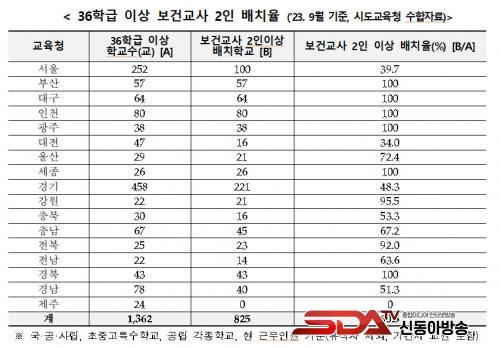 ±¹È¸ ±³À°À§¿øÈ¸ À¯±âÈ« ÀÇ¿ø ( ´õºÒ¾î¹ÎÁÖ´ç ¡¤ ¼¿ï°ü¾Ç°© ) ÀÌ ±³À°ºÎ·ÎºÎÅÍ Á¦Ãâ ¹ÞÀº ¡®36 ÇбÞÀÌ»ó °ú´ëÇб³ º¸°Ç±³»ç 2 ÀÎ ¹èÄ¡À² ¡¯ ¿¡ µû¸£¸é , 2023 ³â 9 ¿ù ±âÁØ 1,362 °³ Çб³ Áß 825 °³ Çб³¸¸ 2 ÀÎ ÀÌ»ó ¹èÄ¡ ¿Ï·áµÇ¾î ¹èÄ¡À²Àº 60.5% ¿¡ ºÒ°úÇß´Ù .