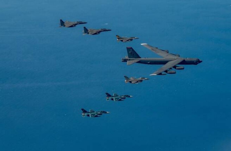 ¹Ì±º ÇÙ¹«Àå Àü·«Æø°Ý±â B-52 °¡ Çѹݵµ Àü°³ ÈÄ º¹±ÍÇÏ´Â »óȲÀ» »óÁ¤ÇØ À̸¦ 3±¹ °ø±ºÀÌ È£À§ÇÏ´Â Æí´ë ºñÇà ÈÆ·ÃÀ¸·Î,