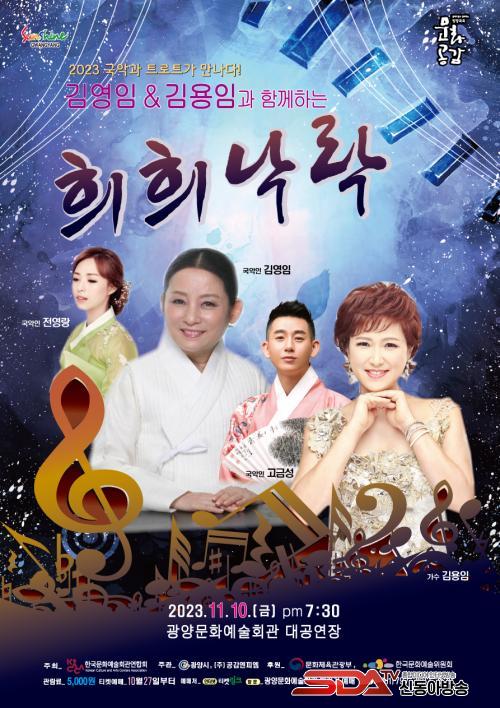 À̹ø °ø¿¬Àº Çѱ¹¹®È¿¹¼úȸ°ü¿¬ÇÕȸ ÁÖÃÖ, ±¤¾ç½Ã ÁÖ°ü, ¹®ÈüÀ°°ü±¤ºÎ¿Í Çѱ¹¹®È¿¹¼úÀ§¿øÈ¸°¡ ÈÄ¿øÇÏ´Â ¡¸2023³â ¹®¿¹È¸°ü°ú ÇÔ²²ÇÏ´Â ¹æ¹æ°î°î ¹®È°ø°¨»ç¾÷¡¹°ø¸ð·Î ¼±Á¤µÈ ¹Î°£¿¹¼ú´Üü ¿ì¼ö°ø¿¬ ÇÁ·Î±×·¥À¸·Î, ±¹¾Ç°ú Æ®·ÎÆ®ÀÇ °æ°è¸¦ Èï°ã°Ô ³Ñ³ªµé¸ç °ü¶÷ÇÒ ¼ö ÀÖ°Ô ÇÏ°í ½Ã¹Îµé¿¡°Ô ´Ùä·Î¿î ¹®È¿¹¼ú°ø¿¬ üÇèÀ» Á¦°øÇϱâ À§ÇØ ¸¶·ÃµÆ´Ù.