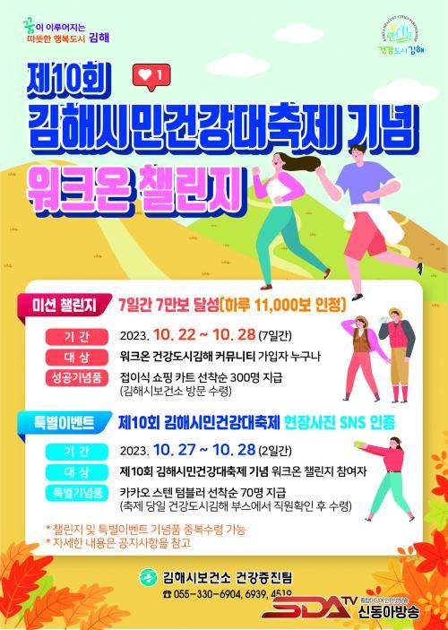 ½Ã´Â 7Àϰ£ 7¸¸º¸ °È±â ¹Ì¼ÇÀ» ´Þ¼ºÇÏ´Â 300ºÐ(¼±Âø¼ø)²² ¼º°ø±â³äǰ(Á¢ÀÌ½Ä ÆúµùīƮ)¸¦ Á¦°øÇÑ´Ù. ¶Ç Ưº°À̺¥Æ®·Î ÃàÁ¦ ±â³ä ¿öÅ©¿Â縰Áö¿¡ Âü¿©ÇÑ ½Ã¹ÎÀÌ °³ÀÎ SNS¿¡ ÃàÁ¦ÇöÀå»çÁøÀ» ¿Ã¸®°í ÇöÀå(°Ç°µµ½Ã±èÇØºÎ½º)¿¡¼ Á÷¿ø È®ÀÎÀ» ¹ÞÀ¸¸é ¼±Âø¼ø 70¸í¿¡°Ô Ưº° ±â³äǰµµ Á¦°øÇÑ´Ù.
