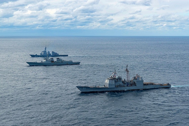 ¡®µ¿ÇØ¡¯¸¦ ¡®ÀϺ»ÇØ¡¯·Î Ç¥±âÇÑ ÇØµµ¿¡¼ Àü¹ü±â ´Ü ÀϺ» ±ºÇÔ°ú ÇѹÌÀÏ ¿¬ÇÕ ÈÆ·Ã,