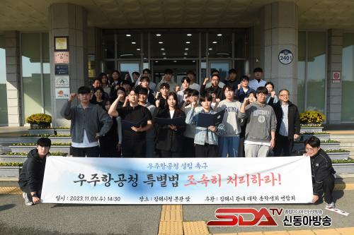 À̵éÀº ¡°´ëÇѹα¹ÀÇ ¹Ì·¡¼ºÀ嵿·ÂÀÌÀÚ Ã»³â°ú Áö¿ªÀÇ »õ·Î¿î ÀÏÀÚ¸® âÃâ ±âȸÀÇ Ãʼ®ÀÌ µÉ ¿ìÁÖÇ×°øÃ» ¼³Ä¡¿¡ ±¹È¸°¡ ³ª¼¾ß ÇÑ´Ù¡±¸ç ¡°±èÇØ½Ã 3°³ ´ëÇÐ 1¸¸ 4,000¸í Çп츦 ´ëÇ¥ÇÏ´Â ÃÑÇлýȸ ¿¬ÇÕÀº À̹ø ¿ìÁÖÇ×°øÃ» Ưº°¹ý Á¦Á¤ÀÇ Áö¿¬ÀÌ ´Ü¼øÈ÷ ¿ì¸® Áö¿ª¸¸ÀÇ ¹®Á¦¶ó´Â Á¼Àº ½Ã°¢À» ³Ñ¾î ±¹°¡¿Í û³âÀÇ ¹Ì·¡¿¡ Áß¿äÇÑ ¹®Á¦ÀÓÀ» °ø°¨ÇÏ¸é¼ ±¹È¸¿¡ ¿ìÁÖÇ×°øÃ» Ưº°¹ýÀÇ Á¦Á¤À» °·ÂÈ÷ Ã˱¸ÇÑ´Ù. ¶ÇÇÑ Áö¿ª û³âÃþÀÇ ¼öµµ±Ç ÀÌÅ»À» ¸·°í, ±ÕÇüÀÖ´Â ±¹°¡¹ßÀü ÃßÁø¿¡ ²À ÇÊ¿äÇÏ´Ù¡±°í ÇÑ ¸ñ¼Ò¸®¸¦ ³Â´Ù.