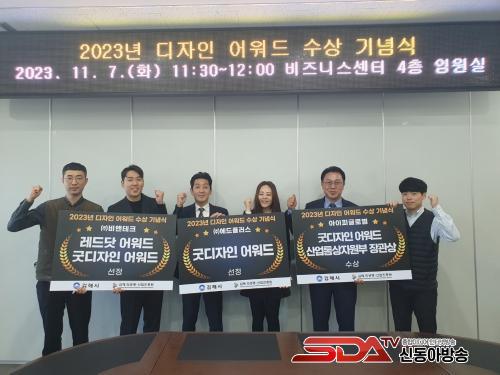 ÁøÈï¿ø Áß¼Ò±â¾÷ µðÀÚÀÎ Áö¿øÀ» ÅëÇØ »ê¾÷Åë»óÀÚ¿øºÎ°¡ ÁÖÃÖÇϰí Çѱ¹µðÀÚÀÎÁøÈï¿øÀÌ ÁÖ°üÇÏ´Â 2023³â ¿ì¼öµðÀÚÀÎ(GD) ¾î¿öµå¿¡¼ ¾ÆÀÌÇDZ۷ιú(´ëÇ¥:¾È¹Ì¾Ö)Àº ±èÇØ ÃÖÃÊ Àº»ó(ÈÆ°Ý:»ê¾÷Åë»óÀÚ¿øºÎ Àå°ü»ó) ¼ö»ó, ¢ßºñ¾ØÅ×Å©(´ëÇ¥:¹æ¿ëÈÖ) ·¹µå´å ¾î¿öµå ¹× ¿ì¼öµðÀÚÀÎ ¾î¿öµå ¼±Á¤, ¢ß¿¡µåÇ÷¯½º(´ëÇ¥:±èÁöÇö, ¼¼º¿Ï) ¿ì¼öµðÀÚÀÎ ¾î¿öµå ¼±Á¤ÀÌ µÇ¾ú´Ù.
