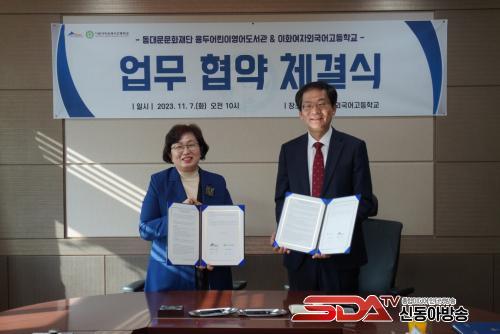 ±è°æ¿í µ¿´ë¹®¹®ÈÀç´Ü ´ëÇ¥ÀÌ»ç´Â ¡°ÀÌÈ¿©Àڿܱ¹¾î°íµîÇб³¿Í Çù¾àÀ» °è±â·Î ¿µ¾î Ư¼ºÈ ÇÁ·Î±×·¥À» ¹ß±¼ÇÏ´Â µî µ¿´ë¹®±¸ ÇлýµéÀÌ ±Û·Î¹ú ÀÎÀç·Î ¼ºÀåÇØ³ª°¥ ¼ö ÀÖ´Â ¹ßÆÇÀ» ¸¶·ÃÇØ ³ª°¡°Ú´Ù.¡±¸ç ¡°¾ÕÀ¸µµ·Î ´Ù¾çÇÑ ±â°ü°úÀÇ Çù·ÂÀ» ÅëÇØ ¡®¹è¿ì°í ¼ºÀåÇÏ´Â µ¿´ë¹®±¸¡¯¸¦ ¸¸µé±â À§ÇØ Àû±Ø ³ë·ÂÇϰڴÙ.¡±°í ÀüÇß´Ù.