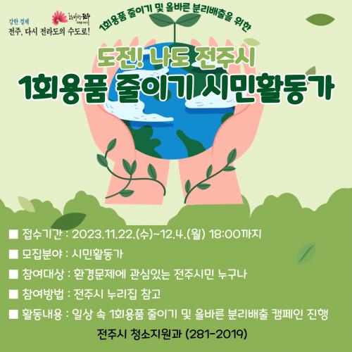 ÀüÁֽà ȯ°æ¹®Á¦¿¡ °ü½É ÀÖ´Â ½Ã¹ÎÀÌ¸é ´©±¸³ª ½Ã¹ÎȰµ¿°¡¿¡ Áö¿øÇÒ ¼ö ÀÖÀ¸¸ç, ½Ã´Â ȯ°æ¹®Á¦¿¡ Å« °ü½É°ú ¿Á¤À» °¡Áö°í SNS Ȱµ¿¿¡ Àû±ØÀûÀÎ ½Ã¹ÎÀ» ¿ì´ëÇØ ¼±¹ßÇÒ °èȹÀÌ´Ù.
