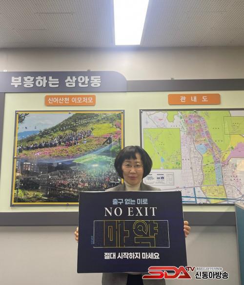 ¡¸NO EXIT¡¹Ä·ÆäÀÎÀº ¸¶¾à Áßµ¶ÀÇ À§Ç輺À» ¾Ë¸®°í À̸¦ ¹æÁöÇϱâ À§ÇÑ ÃëÁö·Î °æÂûû°ú Çѱ¹¸¶¾àÅðÄ¡¿îµ¿º»ºÎ°¡ Áö³ 4¿ùºÎÅÍ ÁøÇàÇϰí ÀÖ´Â ¹ü±¹¹Î ¸¶¾à±ÙÀý ¿îµ¿ÀÌ´Ù.