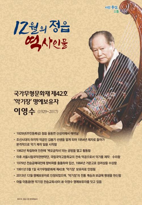 [½Åµ¿¾Æ¹æ¼Û=À¯¸íÁø±âÀÚ] ±¹°¡¹«Çü¹®È­Àç Á¦42È£ ¡®¾Ç±âÀ塯 ÀÌ¿µ¼ö(1929~2017)°¡ ÀÌ´ÞÀÇ Á¤À¾ ¿ª»çÀι°·Î ¼±Á¤µÆ´Ù.