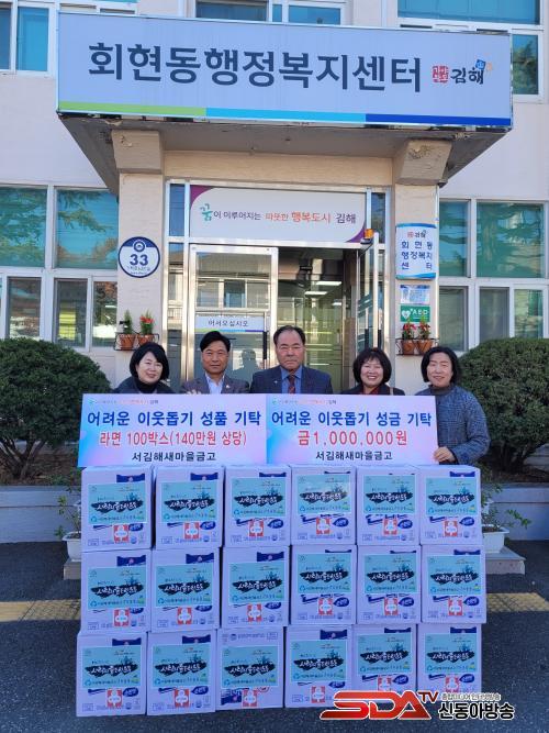 [½Åµ¿¾Æ¹æ¼Û´º½º=±èÁÖ¿¬±âÀÚ] ¼­±èÇØ»õ¸¶À»±Ý°í(ÀÌ»çÀå ÀÌ¿¬¼®)´Â Áö³­ 4ÀÏ È¸Çöµ¿ÇàÁ¤º¹Áö¼¾ÅÍ¿¡ Àú¼Òµæ Ãë¾à °èÃþ¿¡ Àü´ÞÇØ ´Þ¶ó¸ç Çö±Ý100¸¸ ¿ø°ú ¶ó¸é100¹Ú½º(140¸¸¿ø »ó´ç)¸¦ ±âŹÇß´Ù.
