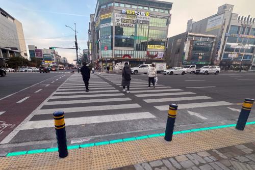 [½Åµ¿¾Æ¹æ¼Û=À̽¿¬±âÀÚ] ±º»ê½Ã°¡ ½Ã¹ÎÀÇ ¾ÈÀüÇÑ º¸Çà ȯ°æ Á¦°øÀ» À§ÇØ º¸ÇàÀÚ ÅëÇàÀÌ ¸¹Àº ¼ö¼Ûµ¿ ·Ôµ¥¸¶Æ® ¾Õ »ç°Å¸®¿¡ LED ¹Ù´ÚÇü º¸Çà½ÅÈ£µîÀ» ¼³Ä¡ÇÏ°í ½Ã¹ü¿î¿µ Áß¿¡ ÀÖ´Ù.