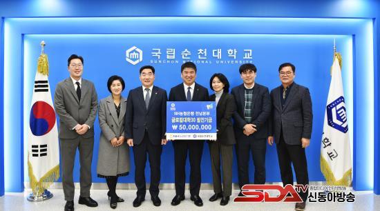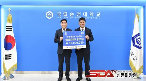NH³óÇùÀºÇà Á¤ÀçÇå º»ºÎÀåÀº ¡°¼øÃµ´ëÇб³°¡ ±Û·ÎÄûç¾÷ÀÇ ¼º°øÀû ¿î¿µÀ» ÅëÇØ Áö¿ª ¹ßÀüÀ» À̲ø¾î ´Þ¶ó´Â ¿°¿øÀ» ´ã¾Æ ¹ßÀü±â±ÝÀ» ±âŹÇÏ°Ô µÇ¾ú´Ù.¡±¸ç, ¡°NH³óÇùÀºÇàÀÌ Áö¿ª ´ëÇ¥ ÀºÇàÀ¸·Î¼ Áö¿ª´ëÇÐÀÇ Å« ȵο¡ Âü¿©ÇÏ°Ô µÇ¾î ¿µ±¤ÀÌ´Ù.¡±¶ó°í ±âŹ ¼Ò°¨À» ÀüÇß´Ù.
