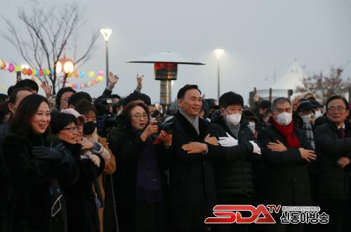 ¿ÀÀü 7½Ã 30ºÐ ÈûÂù ºÏ¼Ò¸®¸¦ ½ÃÀÛÀ¸·Î, ¶°¿À¸£´Â ÇØ¸¦ º¸¸ç °©Áø³â Èñ¸ÁÂù ù³¯À» ¸ÂÀÌÇß´Ù. À̳¯ Çà»ç¿¡¼´Â Âü¼®ÀÚµéÀÇ »õÇØ ¼Ò¸ÁÀ» ´ãÀº ¼Ò¿øÁö¸¦ µå·Ð¿¡ ¸Å´Þ¾Æ ÇÏ´Ã ³ôÀÌ ¶ç¿ì°í, Âü¼® ³»ºóÀÇ »õÇØ Ãà»ç¿Í Èñ¸ÁÂù »õÇØ¸¦ ¿°¿øÇÏ´Â ¾î¸°ÀÌÇÕâ´ÜÀÇ °ø¿¬ÀÌ ÁøÇàµÆ´Ù. 8½Ã 30ºÐºÎÅÍ Ã»´ã°¡·Î°ø¿ø¿¡¼ ¶±±¹À» ³ª´©¸ç ÈÆÈÆÇÑ »õÇØ ¾ÆÄ§À» º¸³Â´Ù.