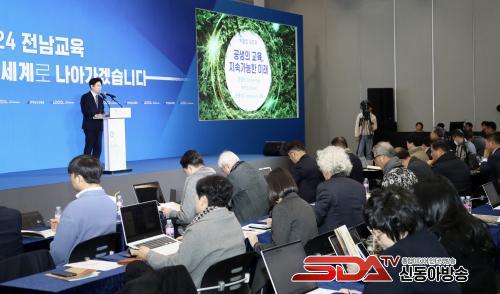 Àü¶ó³²µµ±³À°Ã»Àº 4ÀÏ ¿ÀÀü ¿©¼ö¼¼°è¹Ú¶÷ȸÀå¿¡¼ ±è´ëÁß ±³À°°¨ÀÇ ½Å³â ±âÀÚȸ°ßÀ» ÅëÇØ ÀÌ·± ³»¿ëÀÇ 2024³â ÁÖ¿ä Á¤Ã¥ ÃßÁø°èȹÀ» ¹ßÇ¥Çß´Ù.