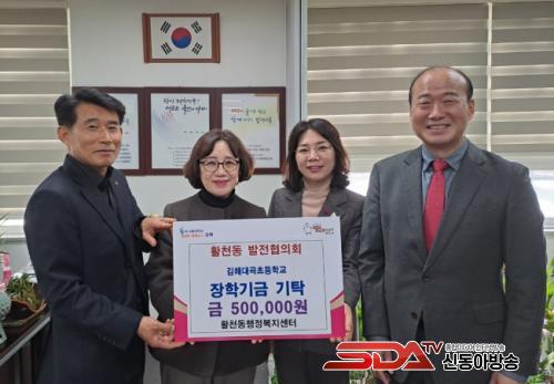À̳¯ Ȱõµ¿¹ßÀüÇùÀÇȸ(ȸÀå ±è¸¸Áø)´Â Ȱõµ¿ ÇàÁ¤º¹Áö¼¾ÅÍ¿¡ ÀåÇÐ±Ý ±âŹ Àǻ縦 ¹àÈ÷¸ç °ü³» ±èÇØ´ë°îÃʵîÇб³¸¦ ÇÔ²² ¹æ¹®ÇÏ¿© ¾î·Á¿î ȯ°æ¿¡¼µµ ¿½ÉÈ÷ Çо÷¿¡ Á¤ÁøÇÏ´Â Çлýµé¿¡°Ô Àü´ÞÇØ ´Þ¶ó¸ç ÀåÇÐ±Ý 50¸¸¿øÀ» ±âŹÇß´Ù.