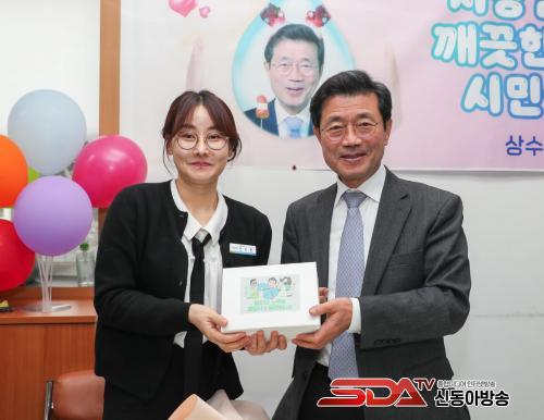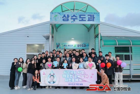 Á¤ ½ÃÀåÀº »õÇØ ù ¡®±¤¾ç½Ã°¡ ÀÀ¿øÇÕ´Ï´Ù!¡¯ Çà»ç·Î ¾ÈÀüÇÑ ¼öµ¾¹° °ø±ÞÀ» À§ÇØ ¾Ö¾²°í ÀÖ´Â »ó¼öµµ°ú¸¦ ã¾Æ Á÷¿øµéÀÇ ³ë°í¸¦ °Ý·ÁÇÏ°í ´ëÈÇÏ´Â ÀÚ¸®¸¦ °¡Á³´Ù.