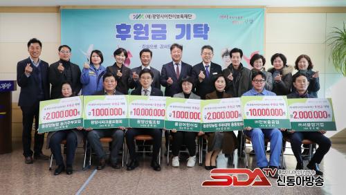 À̹ø¿¡ ±âŹµÈ ±â±ÝÀº ¡ã±¤¾ç½Ã»ê¸²Á¶ÇÕ(Á¶ÇÕÀå ¼Û¹é¼·) 1õ¸¸¿ø ¡ã(ÁÖ)¸¸º¸Áß°ø¾÷(´ëÇ¥ ³²¾çÁØ) 1õ¸¸¿ø ¡ãµ¿±¤¾ç³óÇù ³ó°¡ÁֺθðÀÓ(ȸÀå ¹ÚÇü¾Ö) 2¹é¸¸¿ø ¡ãµ¿±¤¾ç³óÇù ÁֺδëÇÐ Ãѵ¿Ã¢È¸(ȸÀå ±è±Ý¼ø) 2¹é¸¸¿ø ¡ã¢ß¼­±¤¾ç±â¾÷(´ëÇ¥ Á¤¿ìÅÂ) 2¹é¸¸¿ø ¡ã±¤¾ç½ÃÆÄÅ©°ñÇÁÇùȸ(ȸÀå Ç㸸ȣ) 1¹é¸¸¿ø ¡ã¿ë°­¾î¸°ÀÌÁý(¿øÀå ¹Ú¼øÀÚ) 1¹é¸¸¿ø µî ÃÑ 2õ8¹é¸¸¿øÀÌ´Ù.