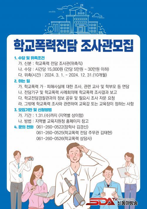 [½Åµ¿¾Æ¹æ¼Û Àü³²¿©¼ö=À̽ŵ¿±âÀÚ]Àü¶ó³²µµ±³À°Ã»ÀÌ 1¿ù Áß ¸ðÁý, 2¿ù Áß 22°³ ±³À°Áö¿øÃ»¿¡ Çб³Æø·ÂÀü´ãÁ¶»ç°ü 198¸íÀ» À§ÃËÇÏ¿©, Çб³Æø·Â ¹ß»ý ½Ã Çб³ ³»¡¤¿Ü ¿©ºÎ¿Í »ó°ü¾øÀÌ »ç¾È Á¶»ç¿¡ ³ª¼­±â·Î Çß´Ù.