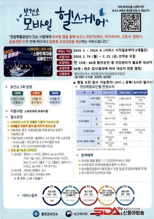 ¡®¸ð¹ÙÀÏ ÇコÄÉ¾î »ç¾÷¡¯Àº °Ç°À§Çè¿äÀÎÀÌ ÀÖ´Â »ç¶÷¿¡°Ô ¸ð¹ÙÀÏ ¾ÛÀ» ÅëÇÑ ÀÏ´ëÀÏ(1:1) ¸ÂÃãÇü °Ç°°ü¸®¿Í »ýȰ½À°ü °³¼±À» Áö¿øÇÏ´Â ¼ºñ½ºÀÌ´Ù. ´ë»ç¼ºÁúȯ À§Ç豺ÀÇ ÀÚ°¡ °ü¸® ´É·ÂÀ» Çâ»ó½ÃÄÑ ±º¹ÎÀÇ °Ç°ÁõÁø°ú »îÀÇ Áú Çâ»óÀ» µµ¸ðÇϰíÀÚ ¿À´Â 3¿ùºÎÅÍ 8¿ù±îÁö 24ÁÖ°£ ¿î¿µµÈ´Ù.