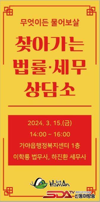 À̹ø ¡®Ã£¾Æ°¡´Â ¹ý·ü¡¤¼¼¹«»ó´ã¼Ò¡¯´Â ÇöÀå¿¡ Á÷Á¢ ã¾Æ°¡ ÀÏ»ó»ýȰ°ú ¹ÐÁ¢ÇÑ ¾Ö·Î»çÇ׿¡ ´ëÇÑ ÁֹεéÀÇ °íÃæÀ» ½Å¼ÓÇÏ°Ô ÇØ°áÇϱâ À§ÇØ ¸¶·ÃµÆ´Ù. »ýȰ¹ý·ü Àü¹®°¡ÀÎ ÀÌÇÐ·æ ¹ý¹«»ç¿Í ÇԾȱº ¸¶À»¼¼¹«»ç·Î Ȱµ¿Çϰí ÀÖ´Â ÇÏÁøÈ¯ ¼¼¹«»ç°¡ Á÷Á¢ »ó´ãÀ» ÁøÇàÇÒ ¿¹Á¤ÀÌ´Ù.