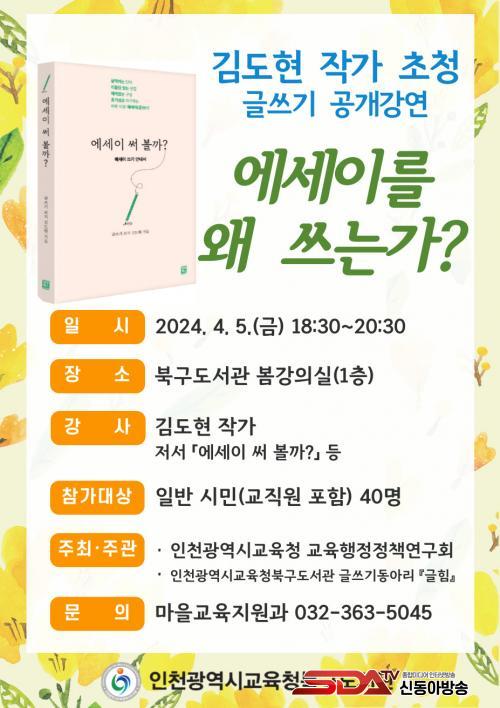 ÇÁ·Î±×·¥Àº 4¿ù 5ÀÏ ¡¸¿¡¼¼ÀÌ ½á º¼±î?¡¹ÀÇ ÀúÀÚ ±èµµÇö ÀÛ°¡ ÃÊû °¿¬À» ½ÃÀÛÀ¸·Î 4¿ù 12ÀϺÎÅÍ 5¿ù 24ÀϱîÁö 7ÁÖ°£ ¿î¿µÇÑ´Ù. ¼ö°»ýµéÀÇ ÀÛ¾÷ °á°ú¹°Àº Ã¥À¸·Î ¿«¾î ÃâÆÇÇÒ ¿¹Á¤ÀÌ´Ù.