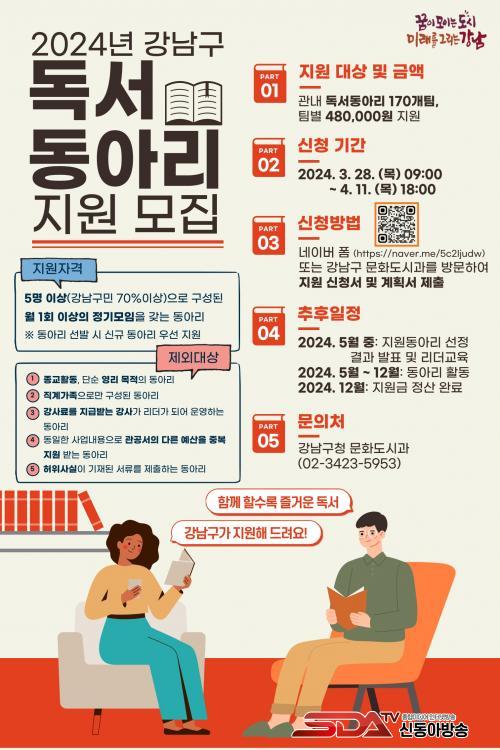 µ¿¾Æ¸®´Â °­³²±¸¿¡¼­ ¿ù 1ȸ ÀÌ»ó Ȱµ¿ÇÏ´Â 5ÀÎ ÀÌ»óÀÇ µ¶¼­µ¿¾Æ¸®¸¦ ´ë»óÀ¸·Î Çϸç, ±¸¼º¿ø °¡¿îµ¥ °­³²±¸¹ÎÀÇ ºñÀ²ÀÌ 70% ÀÌ»óÀ̾î¾ß ÇÑ´Ù. ¾ÕÀ¸·Î ±¸¼º°èȹÀÌ ÀÖ´Â ½Å±Ô µ¿¾Æ¸®µµ ½ÅûÇÒ ¼ö ÀÖ´Ù.
