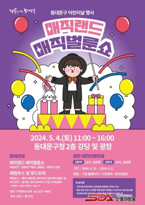 µ¿´ë¹®±¸Ã» 2Ãþ °´ç¿¡¼ ÁøÇàµÇ´Â ¸ÅÁ÷¹ú·é¼î´Â ¿ÀÀü 11½Ã, ¿ÀÈÄ 2½Ã ÃÑ 2ȸ °ø¿¬À¸·Î 60ºÐ µ¿¾È ÁøÇàµÈ´Ù. °ø¿¬Àº ¿Â¶óÀÎ Á¢¼ö¸¦ ÅëÇØ »çÀü ½ÅûÀ» ¸¶ÃÆÀ¸¸ç, »çÀü ½ÅûÀ» ÇÏÁö ¸øÇÑ ±¸¹Î¿¡°Ô´Â °ø¿¬ ´çÀÏ ¼±Âø¼øÀ¸·Î ÇöÀå Á¢¼ö¸¦ ÅëÇØ ÀÔÀå±Ç 100¸Å¸¦ Ãß°¡·Î ¹èºÎÇÒ ¿¹Á¤ÀÌ´Ù.