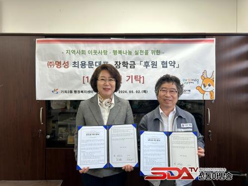 ¢ß¸í¼º ´ëÇ¥ ÃÖ¿ë¹®¾¾´Â À̹ø ÈÄ¿ø Çù¾àÀ» ÅëÇØ °¡ÁÂ2µ¿ ÇàÁ¤º¹Áö¼¾ÅÍ¿¡ ÀåÇÐ±Ý 1,200¸¸¿øÀ» ±âºÎÇß´Ù. À̳¯ ±âºÎµÈ 1,200¸¸¿øÀº °¡ÁÂ2µ¿ °ü³» 10¸íÀÇ Ã»¼Ò³âÀÌ ÃʵîÇб³ ¶§ºÎÅÍ °íµîÇб³¸¦ Á¹¾÷ÇÒ ¶§±îÁö ¸Å¿ù 10¸¸¿ø ¾¿ 1³â°£ ÀåÇбÝÀ¸·Î Àü´ÞµÉ ¿¹Á¤ÀÌ´Ù.