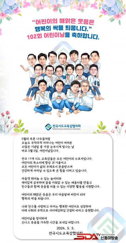 Àü±¹ 17°³ ½Ãµµ ±³À°°¨Àº ¾î¸°À̵éÀÇ ¼öÈ£Àڷμ ¾î¸°ÀÌÀÇ ¸ñ¼Ò¸®¿¡ Ç×»ó ±Í ±â¿ïÀ̰í, ¸¶À½²¯ ¶Ù¾î³î ¼ö ÀÖ´Â ³îÀÌ °ø°£°ú ²ÞÀ» Ű¿ö°¡´Â ¹è¿òÅ͸¦ Á¶¼ºÇÏ¿©, ¸ðµç ¾î¸°À̰¡ »îÀÇ ÁÖü·Î¼ Á¸Áß¹ÞÀ¸¸ç Áñ°Å¿î Çб³»ýȰÀ» ¿µÀ§ÇÒ ¼ö ÀÖµµ·Ï ÃÖ¼±À» ´ÙÇϰڴٰí ÇÏ¿´´Ù.