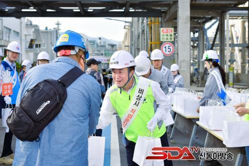 ƯÈ÷ ´ëÁ¤ºñ ±Ù·ÎÀÚ Ãâ±Ù½Ã°£¿¡ ¸ÂÃç ¾ÆÄ§ 7½Ã20ºÐºÎÅÍ ½ÃÀÛµÈ Ä·ÆäÀο¡¼ Âü¿©ÀÚµéÀº ±Ù·ÎÀÚ¿¡°Ô È«º¸¹°À» ¹èºÎÇÏ¸ç ¾ÈÀü±¸È£¸¦ Á¦Ã¢ÇÏ´Â µî »ç¾÷Àå ±Ù·ÎÀÚ ¾ÈÀüÀÇ½Ä °íÃë¿¡ Èû½è´Ù.