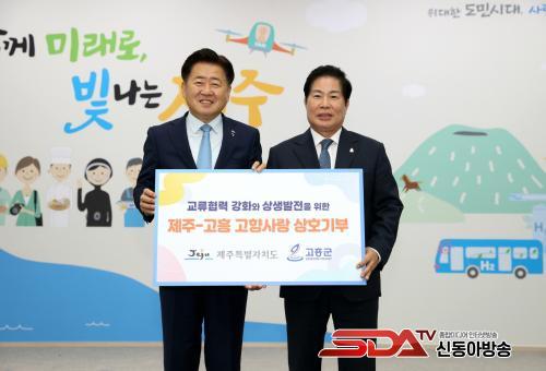 ÀÌ¿¡ ¾Õ¼­, Áö³­ÇØ 1¿ù °ø¿µ¹Î ±º¼ö°¡ Á¦ÁÖ-°íÈï °£ »ó»ý¹ßÀü°ú ±³·ù Çù·Â ÇÁ·ÎÁ§Æ® ÃßÁøÀ» À§ÇÑ Á¦Áֹ湮¿¡¼­ °íÇâ»ç¶û±âºÎ±ÝÀ» ±âŹÇÑ µ¥ À̾î 6¿ù ¿À¿µÈÆ µµÁö»çÀÇ °íÈﱺ ÃÊû Ư°­°ú °íÇâ»ç¶û±âºÎ±Ý ±âŹÀÌ ÀÌ·ç¾îÁø ¹Ù ÀÖ´Ù. À̳¯¿¡µµ °íÈﱺ°ú Á¦ÁÖµµ´Â °¢°¢ 2õ¸¸ ¿øÀÇ °íÇâ»ç¶û±âºÎ±ÝÀ» Àü´ÞÇϸç Áö¼ÓÀûÀÎ ±³·ù¿Í »ó»ý¹ßÀü Çù·Â¿¡ ¾ÕÀå¼­±â·Î Çß´Ù.