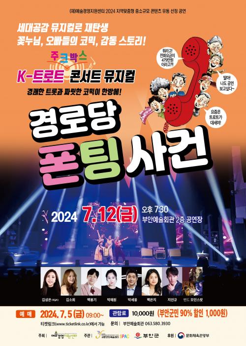 À̹ø °ø¿¬Àº ´õ¿í ¾÷±×·¹À̵åµÈ °¢»ö°ú ¿¬Ãâ·Î ±âȹµÆÀ¸¸ç µå¶ó¸¶ ¡®¼øÇ³»êºÎÀΰú¡¯¿¡¼ ¹Ì´ÞÀÌ ¿ªÀ¸·Î Àü ±¹¹ÎÀÇ »ç¶ûÀ» ¹ÞÀº ¹è¿ì ±è¼ºÀº, °¡¼öÀÌÀÚ ¹è¿ìÀÎ ¹éºÀ±â, ¹Úä¿ø, ¸ð´ø½ºÆÌ 5ÀÎÁ¶ ¹êµå µî ´Ù¾çÇÑ Ã⿬ÁøÀÇ ¿¿¬ÀÌ ±â´ëµÈ´Ù.