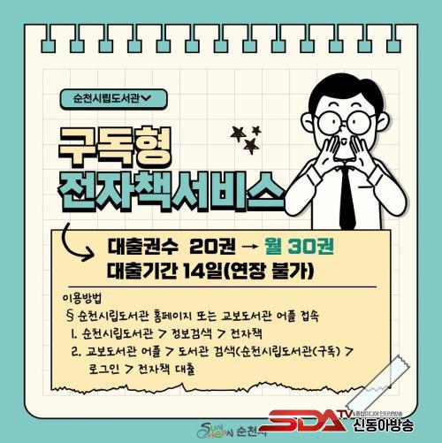 ÀüÀÚÃ¥ ¼ºñ½º´Â ¼øÃµ½Ã¸³µµ¼°ü ´ëÃâÁõ ¹ß±Þ ȸ¿øÀÌ¸é ´©±¸³ª ÀÌ¿ëÀÌ °¡´ÉÇϸç, ¼øÃµ½Ã¸³µµ¼°ü ´©¸®Áý(https://library.suncheon.go.kr)°ú ¸ð¹ÙÀÏ ¾îÇÃ(±³º¸µµ¼°ü)¿¡¼ ÀüÀÚÃ¥À» º¼ ¼ö ÀÖ´Ù. 1ÀÎ´ç ¿ù 30±Ç±îÁö ´ëÃâ °¡´ÉÇϸç, ´ëÃâ±âÇÑÀº 14ÀÏÀÌ´Ù.