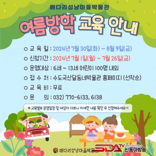 ±³À°Àº ¹«·á·Î ¿î¿µÇÏ¸ç ½Åû Á¢¼ö´Â ¼öµµ±¹»ê´Þµ¿³×¹Ú¹°°ü ȨÆäÀÌÁö¿¡¼ 7¿ù 26ÀϱîÁö ¹Þ´Â´Ù. ´Ü ±³À°Àº ¹Ú¹°°ü »çÁ¤¿¡ µû¶ó º¯°æµÉ ¼ö ÀÖÀ¸¸ç ½Åû ÀοøÀÌ Á¤¿øÀÇ Àý¹ÝÀ» ä¿ìÁö ¸øÇϸé Ãë¼ÒµÉ ¼ö ÀÖ´Ù.
