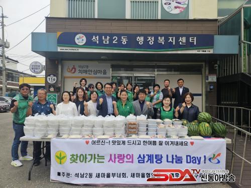 [½Åµ¿¾Æ¹æ¼Û ÀÎõ= À±¹Î½Ä±âÀÚ] ÀÎõ ¼­±¸ ¼®³²2µ¿ »õ¸¶À»ºÎ³àȸ(ȸÀå ½ÅÀÎÀÚ)´Â Áö³­ 7¿ù 12ÀÏ °ü³» °æ·Î´ç ¾î¸£½ÅµéÀÇ °Ç°­ÇÑ ¿©¸§³ª±â¸¦ À§ÇØ »ï°èÅÁ 100ÀκР³ª´® Çà»ç¸¦ ÁøÇàÇß´Ù.