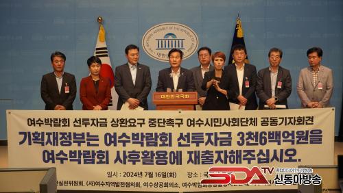 ÁÖöÇö‧Á¶°è¿ø ±¹È¸ÀÇ¿øµµ ¿©¼öÁö¿ª ½Ã¹Î»çȸ´Üü °ü°èÀÚµé°ú 16ÀÏ ±¹È¸ ¼ÒÅë°ü¿¡¼ ¡®¿©¼ö¼¼°è¹Ú¶÷ȸ Ȱ¼ºÈ¸¦ À§ÇÑ ±¹°¡¼±ÅõÀÚ±Ý ÀçÃâÀÚ Ã˱¸¡¯ ±âÀÚȸ°ßÀ» Çß´Ù.