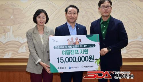 »çÁø=À¯Á¤º¹ ÀÎõ±¤¿ª½ÃÀåÀÌ 12ÀÏ ½Ãû ´ëÁ¢°ß½Ç¿¡¼­ ¿­¸° 'Á¶¼Õ°¡Á· ¿©¸§Ä·ÇÁ ÈÄ¿ø±ÝÀ» Àü´Þ½Ä'¿¡¼­ ±â³äÃÔ¿µÀ» Çϰí ÀÖ´Ù. (¿ÞÂʺÎÅÍ À̼­¿µ ÃÊ·Ï¿ì»ê¾î¸°ÀÌÀç´Ü º»ºÎÀå, À¯Á¤º¹ ÀÎõ½ÃÀå, ±Çµµ±¹ °è¾ç±¸°¡Á·¼¾ÅÍ ¼¾ÅÍÀå)