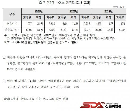 [½Åµ¿¾Æ¹æ¼Û ÀÎõ= À±¹Î½Ä±âÀÚ] ¡à ÀÛ³â 4¼¼´ë ±³À°ÇàÁ¤Á¤º¸½Ã½ºÅÛ(NEIS¡¤³ªÀ̽º)´ë¶õ µû¸¥ °¨»ç°á°ú ÃÑüÀû ºÎ½ÇÀÌ µå·¯³ª ÁÖ¹«ºÎóÀÎ ±³À°ºÎ Ã¥ÀÓÀÌ Å©´Ù´Â ÁöÀûÀÌ Á¦±âµÆ´Ù.
