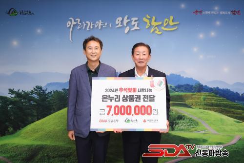 [½Åµ¿¾Æ¹æ¼Û=À̽ŵ¿±âÀÚ] ÇԾȱºÀº 2ÀÏ BNK°æ³²ÀºÇà ÇÔ¾ÈÁöÁ¡ »ç¶û³ª´®Àç´Ü¿¡¼­ Ãß¼®À» ¸ÂÀÌÇØ Àú¼ÒµæÃþ¿¡°Ô ¿Â´©¸®»óǰ±Ç 700¸¸ ¿øÀ» Áö¿øÇß´Ù°í ¹àÇû´Ù.